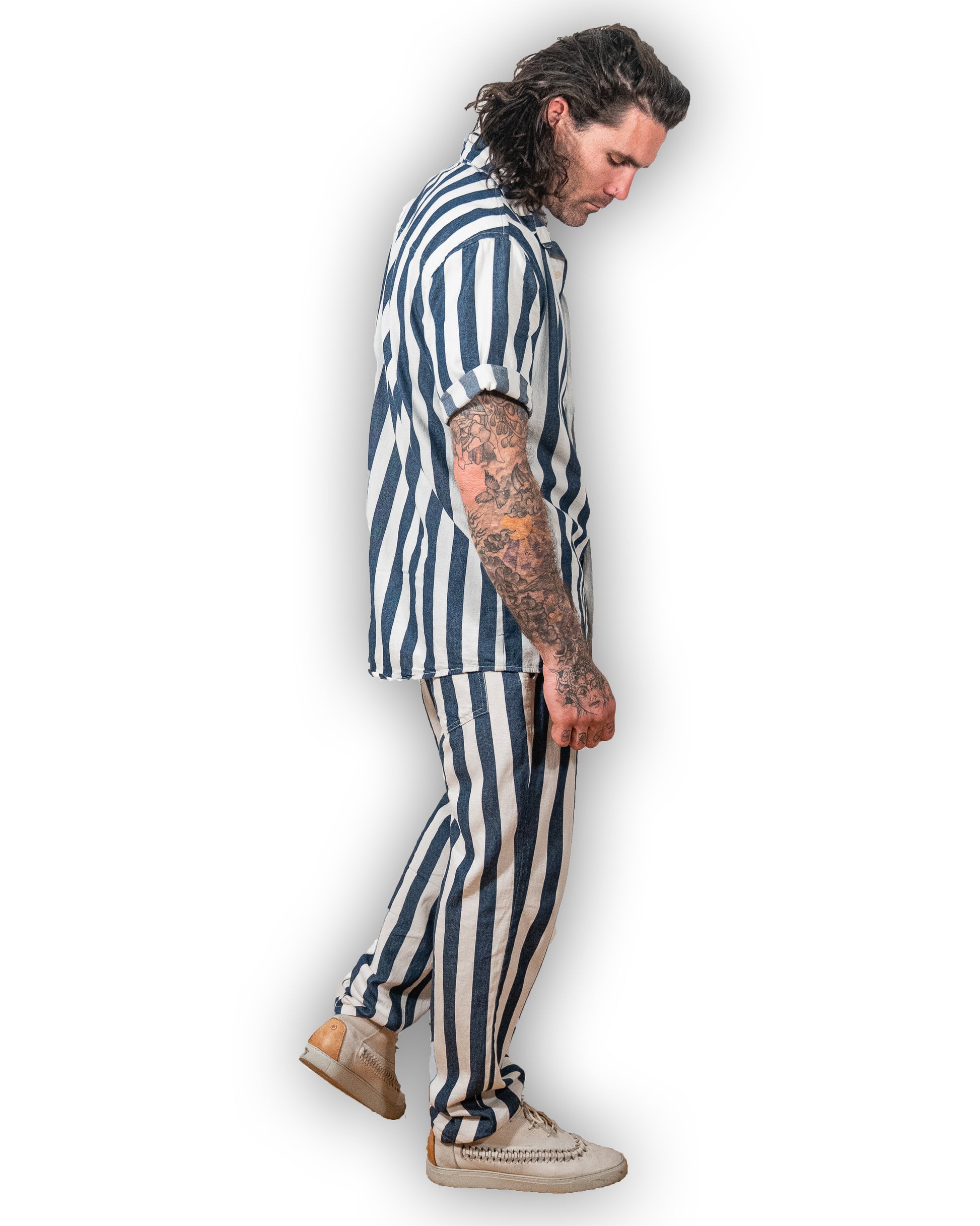Our signature silhouette button down in premium lightweight denim. Details include our Padre logo embroidered in white on the wearer's left chest pocket and an extended hem.